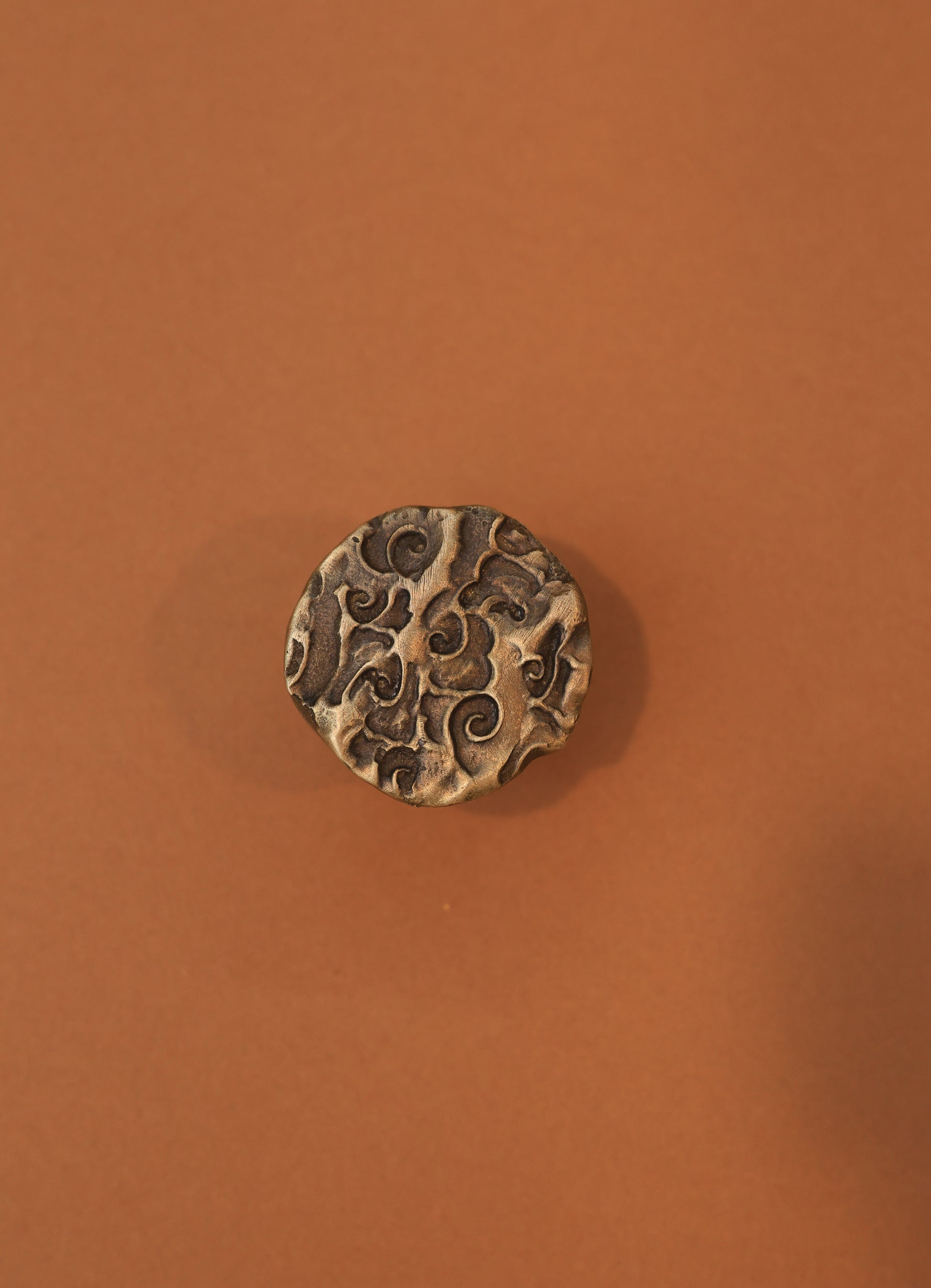 Repoussé – The brass is shaped from the reverse side to create intricate, raised forms. This technique allows the metal to flow organically, giving each piece sculptural depth and softness.