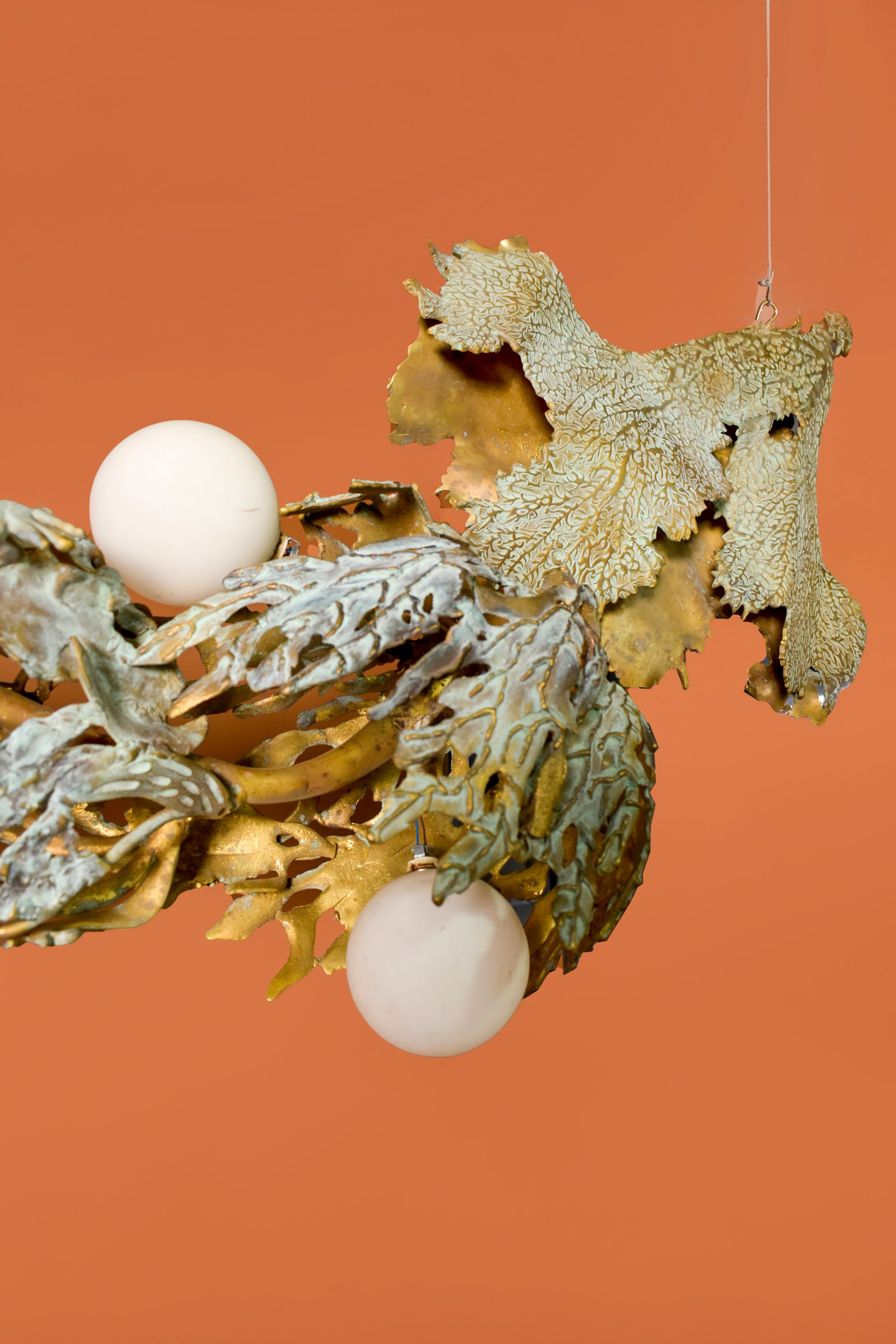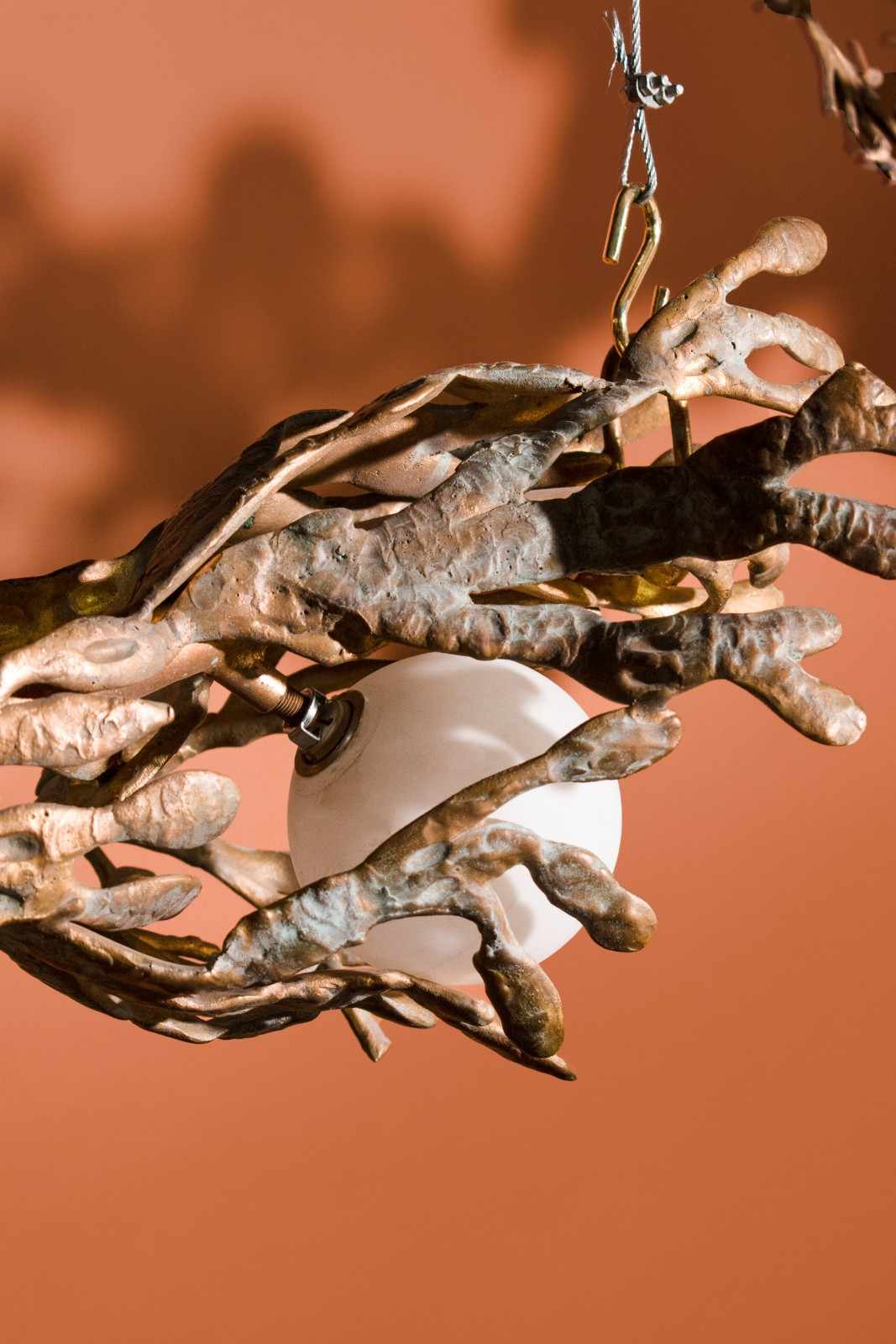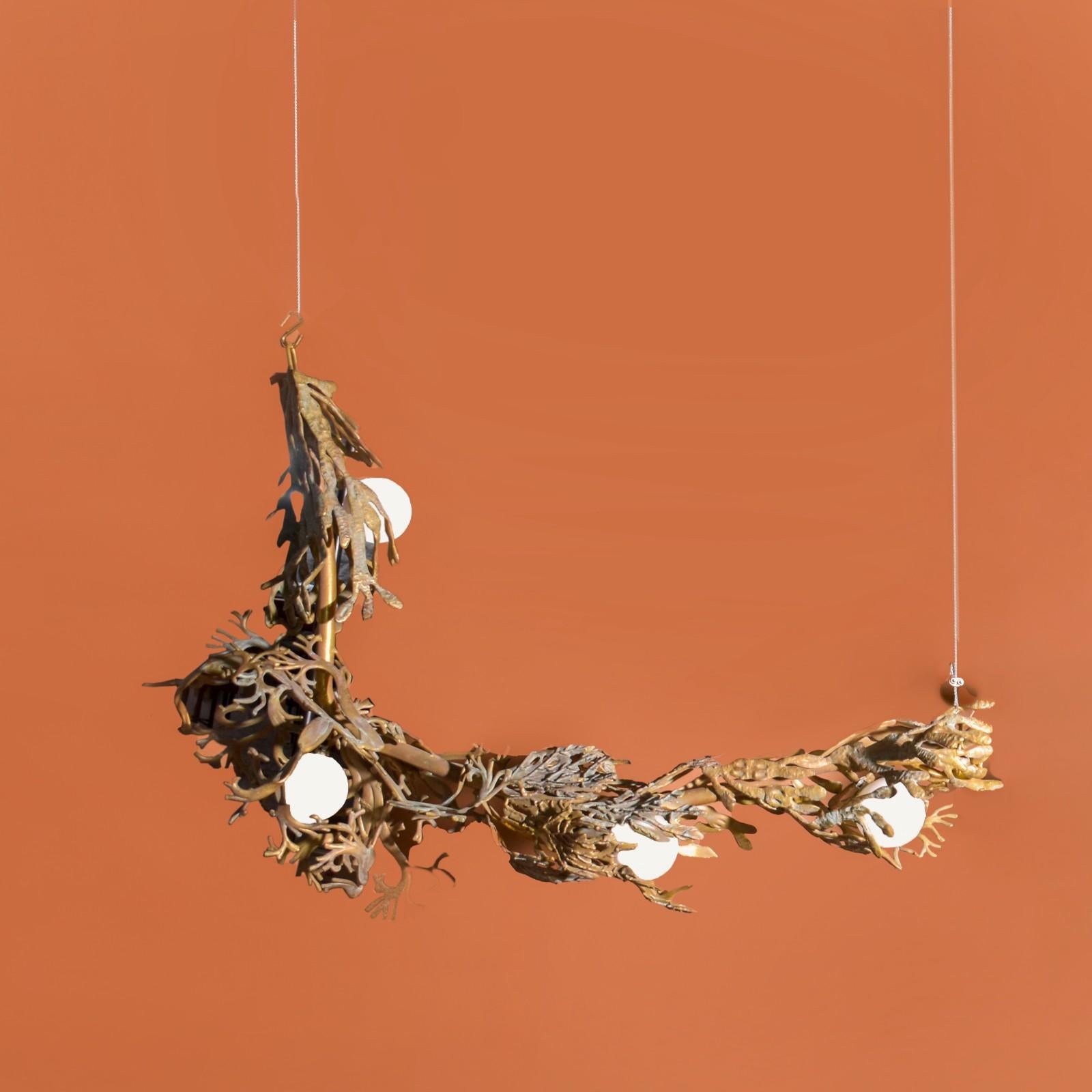 GST and shipping included for PAN India ordersInspired by the branching textures and organic forms of living corals, this sculptural dining light features hand-sculpted brass elements that appear to drift and grow across the ceiling. Each piece echoes the irregular elegance of reef formations, casting delicate shadows and creating a serene, underwater-like ambiance above the dining space.