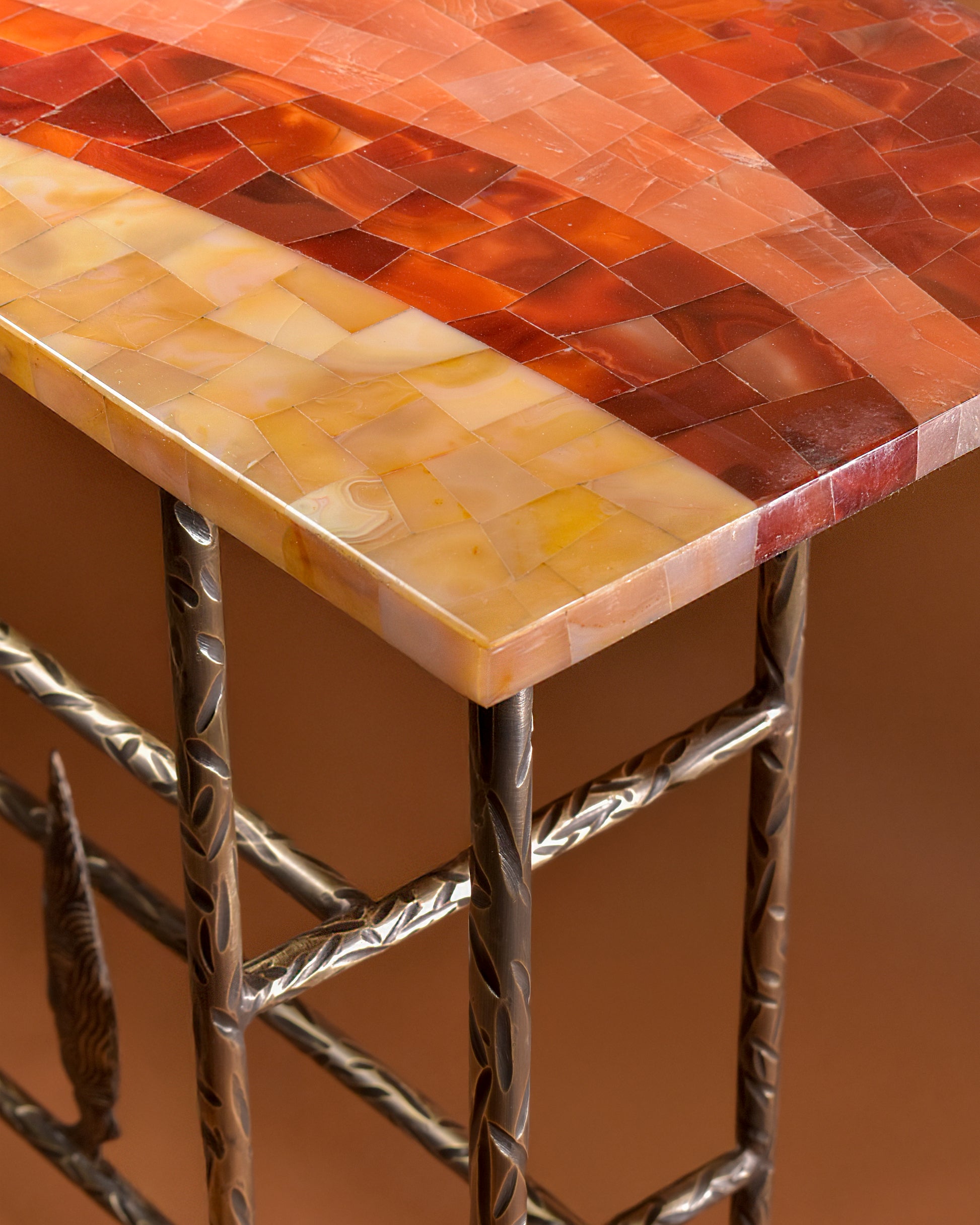 Stone Inlay – Fine stones are carefully embedded into brass surfaces, introducing subtle accents of colour and luxury that enhance the narrative of material contrast.