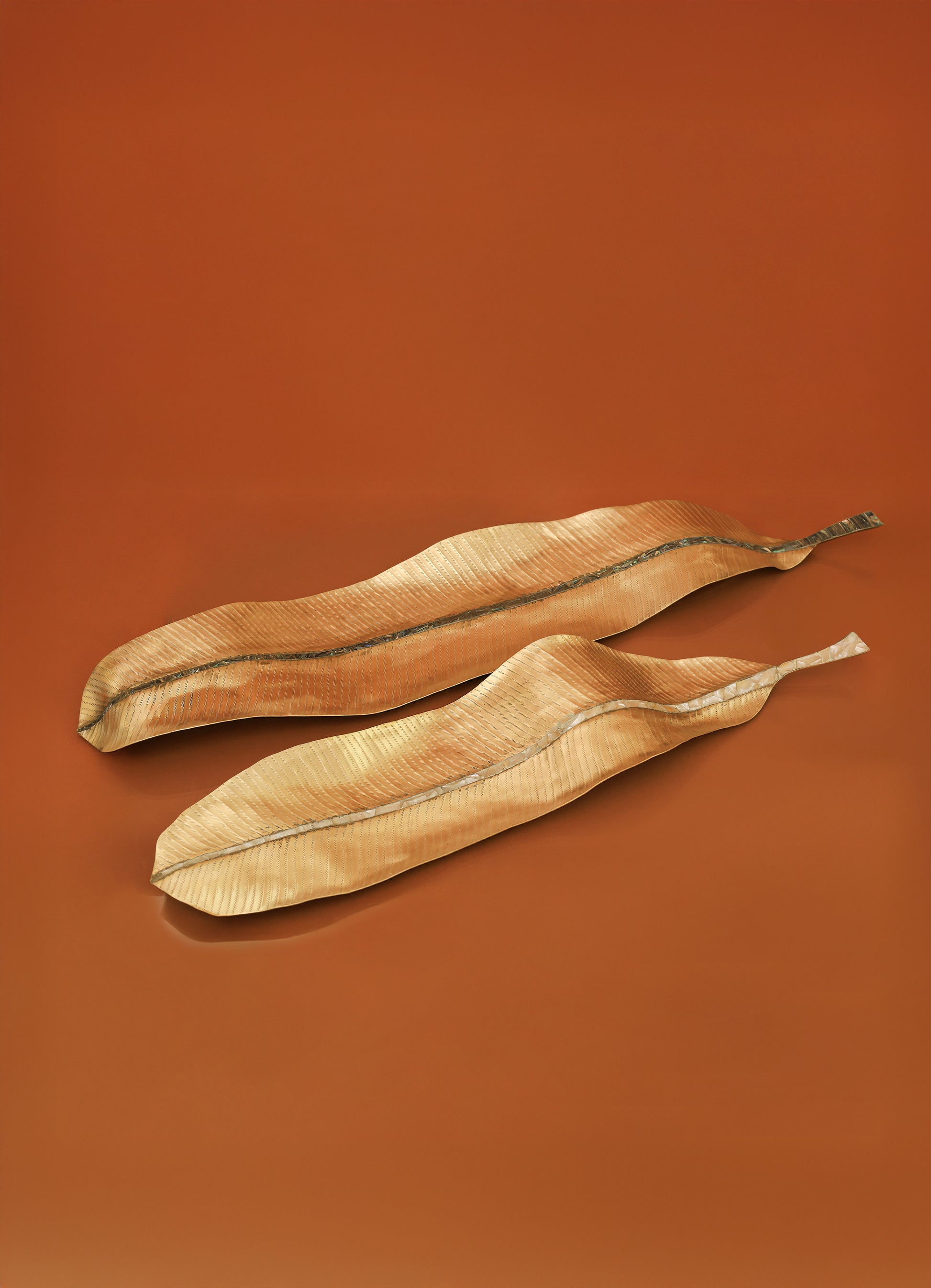 Inspired by the graceful curves of banana leaves, these platters celebrate organic form and craftsmanship. Each piece is skillfully crafted using rapooze and accented with a refined stone inlay at the centre, creating a perfect balance of artistry and function. Ideal for serving or as decorative accents, they bring a touch of nature-inspired elegance to any setting.
