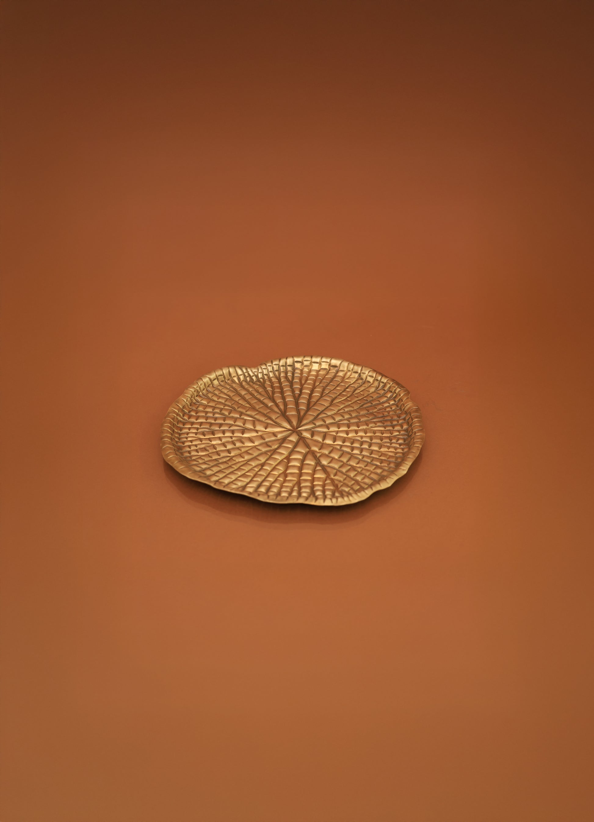 Elegant and sculptural, this brass platter takes the graceful form of a lotus leaf, symbolizing purity and tranquillity. Handcrafted with fine detailing, it blends artistry and functionality to create a timeless statement piece for dining or décor.
